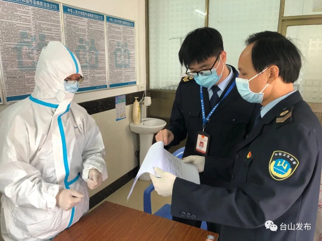 迅速集结全员奔赴抗疫一线。1月23日市卫生监督所成立医疗卫生监督、公共卫生监督和后勤保障等3个工作组,加强疫情防控监督工作。1月25日(大年初一)全体卫生监督员取消休假,深入一线对医疗机构、车站及港口码头、大型购物超市、集中式供水单位等开展防控疫情检查,拉开了全方位、无盲区、无死角的监督防控网。面对风险卫生监督员没有丝毫犹豫,用实际行动诠释“国有战、召必回”的应有担当,自觉践行“以人民健康为中心”的宗旨,坚定成为守护台山人民群众健康的蓝盾卫士。