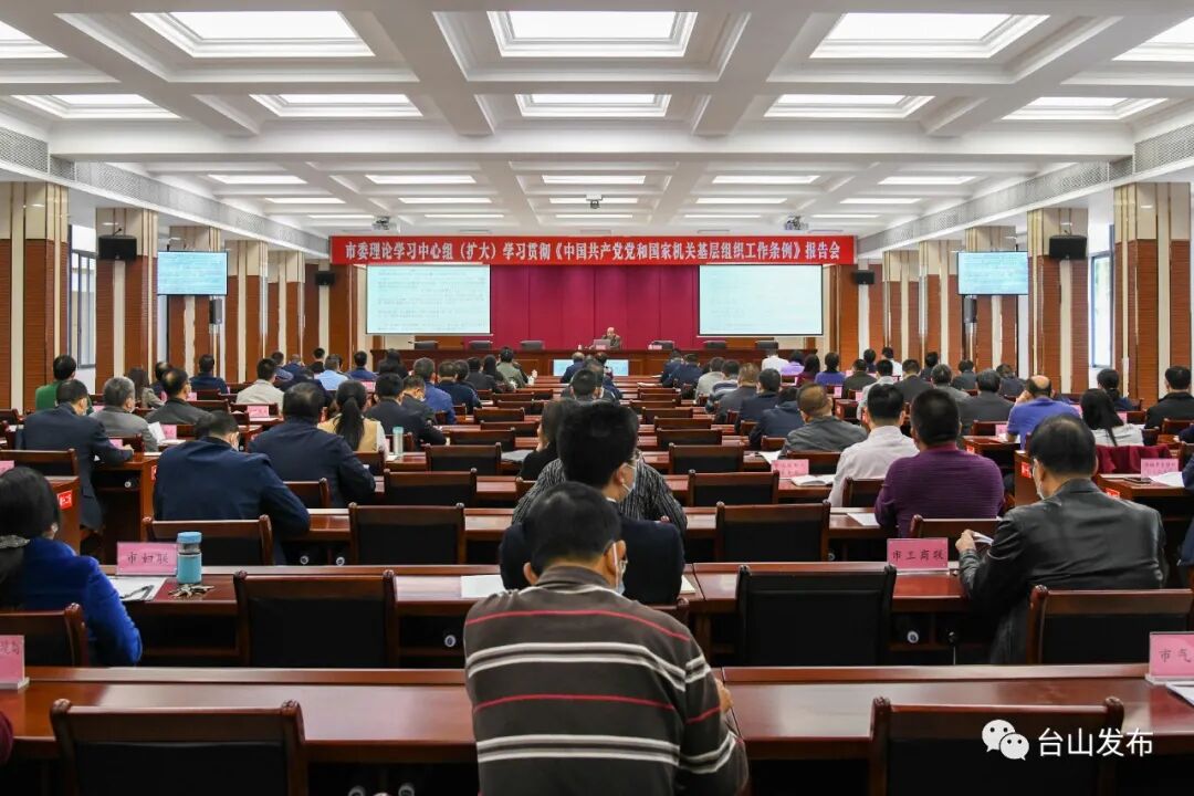 4月24日上午,市委召开理论学习中心组(扩大)专题学习会,专题学习《中国共产党党和国家机关基层组织工作条例》(以下简称《条例》)。市四套班子成员,各镇街、市直有关单位及上级驻我市有关单位的主要负责同志参加学习。