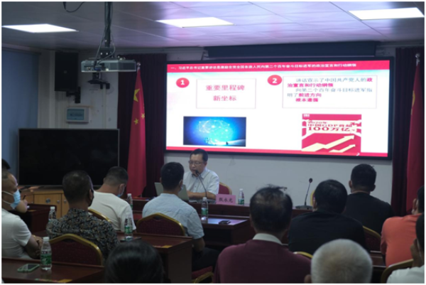 为深入学习宣传贯彻习近平总书记在庆祝中国共产党成立100周年大会上的重要讲话精神,推动党史学习教育走深走实,9月17日上午,我市邀请中共台山市委党校副校长、市委宣讲团成员甄永光到广海镇鲲鹏村委会为村党员干部宣讲习近平总书记“七一”重要讲话精神。