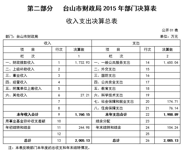 第二部分 台山市财政局2015年部门决算表