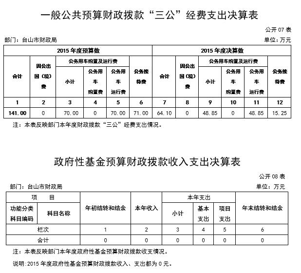 第三部分 台山市财政局2015年部门决算情况说明