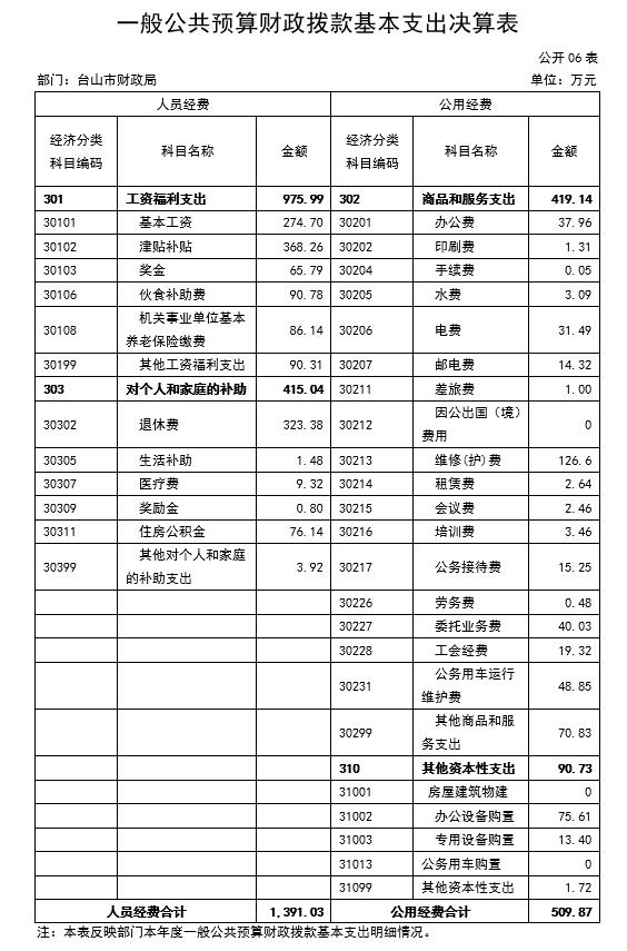 五、基本支出:指为保障机构正常运转、完成日常工作任务面发生的人员支出和公用支出。