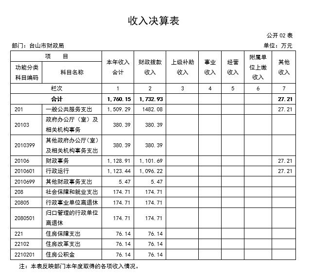 台山市财政局2015年度总收入2,005.13万元,其中本年收入1,760.15万元。具体情况如下: