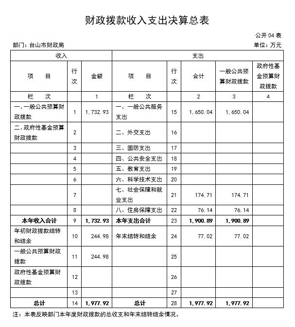 四、财政拨款收入支出决算总表