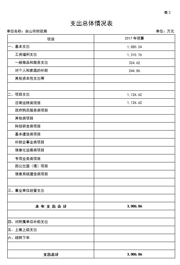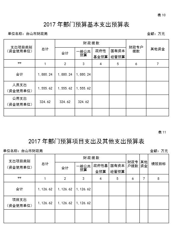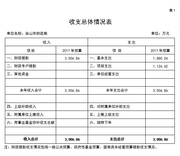 (一)本部门预算为汇总预算,包括:台山市财政局本级预算,以及纳入编制范围的下属单位预算。下属单位具体包括:台山市政府投融资和债务工作办公室,台山市财政投资审核中心,台山市财政国库支付中心。