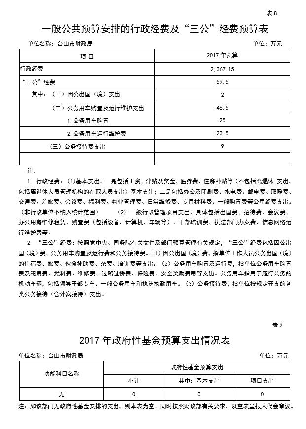 八、一般公共预算安排的行政经费及“三公”经费预算表