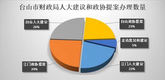 2018年,承办江门市、台山市人大代表建议和江门市、台山市政协委员提案共70件(其中江门市人大代表建议16件,台山市人大代表建议19件,江门市政协委员提案18件,台山市政协委员提案17件),其中台山人大建议主办2件,江门市政协提案台山分办主办1件,其余皆为协办。另外办理江门人大常委会组成人员走访代表活动反映意见和建议4件,其中主办1件,实现了“办复率100%、满意率100%”的工作目标,并获得2018年市建议提案工作优秀奖。