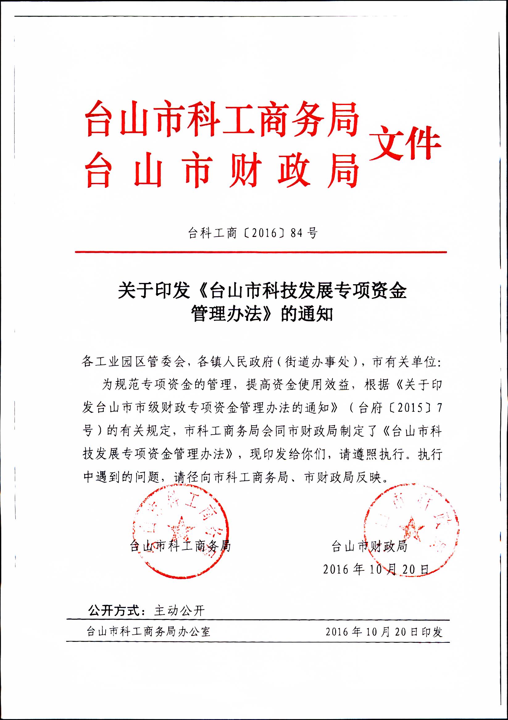 三、支持我市《中共台山市委、台山市人民政府关于实施创新驱动发展战略,加快创新型城市建设的意见》(台发〔2015〕2号)文件中明确要求给予补助的相关科技创新项目。