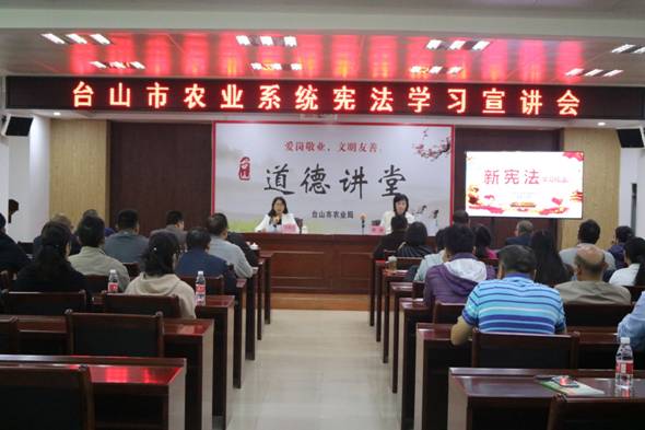 今年12月4日是我国第五个国家宪法日,也是宪法新修订后第一个国家宪法日,具有特殊重要的意义。为深入学习宣传贯彻好宪法修正案,帮助农业系统党员干部学习好、领会好宪法修正案的意义及内容, 11月28日下午,我局在十楼会议中心举办农业系统宪法学习宣讲会。会议由局党组成员、纪检组长蔡凤娇同志主持,局全体班子成员,各股室、直属单位全体干部职工参加会议。