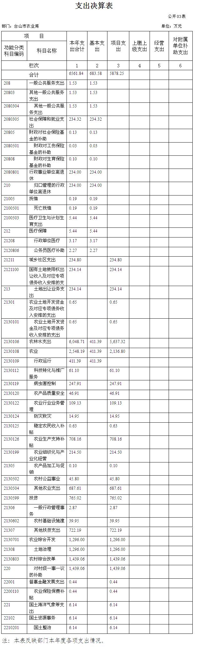 台山市农业局2016年度总支出6561.84万元,其中本年支出6561.84万元。具体情况如下: