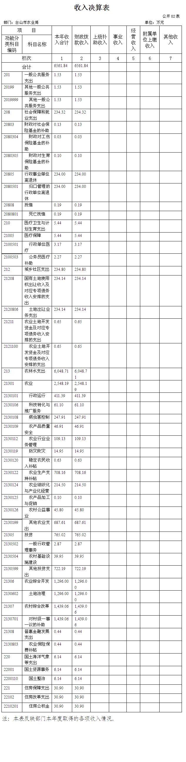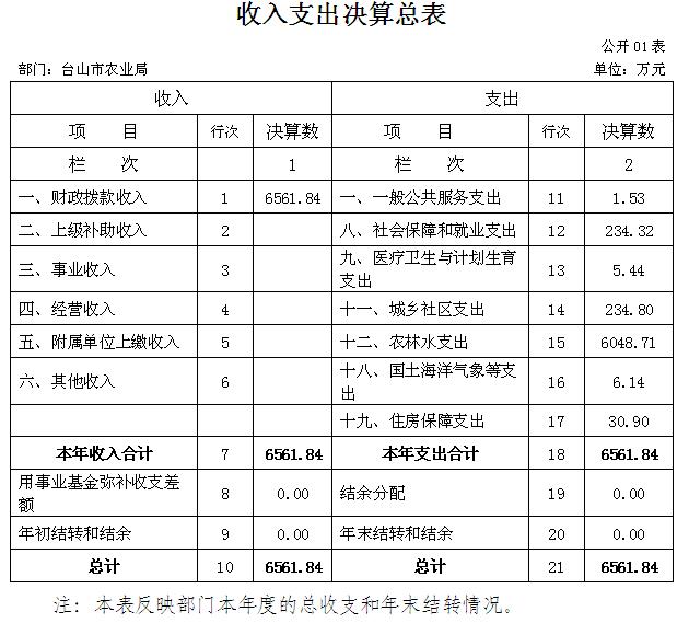 台山市农业局2016年度总收入6561.84万元,其中本年收入6561.84万元。具体情况如下: