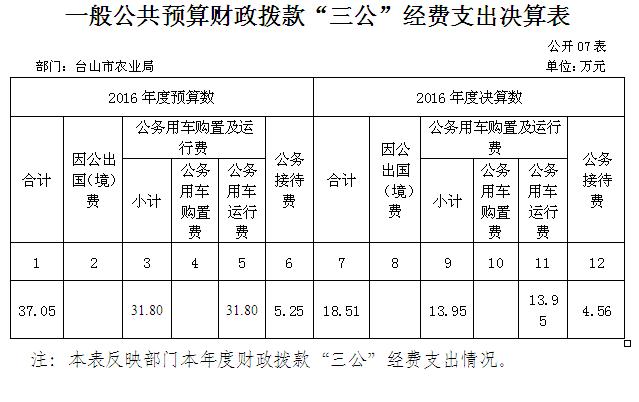3.公务接待费支出 4.56 万元。2016年,台山市农业局共接待国外来访团组 0个,来访外宾 0人次;发生国内接待 70次,接待人数共701人。