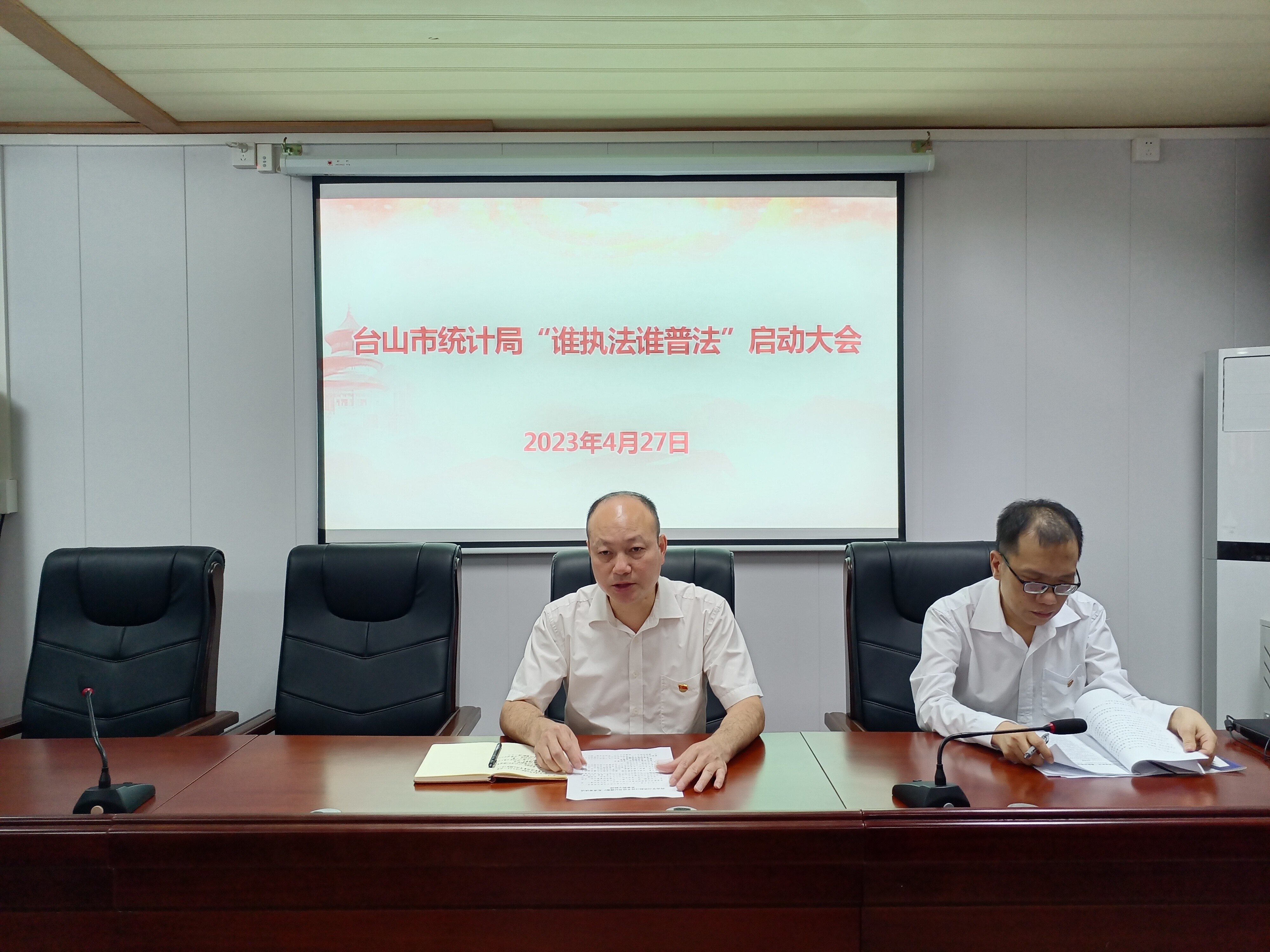 为深入贯彻落实习近平法治思想,进一步完善普法责任制,推动落实2023年“谁执法谁普法”活动,近日,台山市统计局召开“谁执法谁普法”启动大会。局党组书记、局长主持会议,全体干部参加。