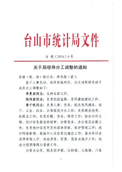 关于局领导分工调整的通知