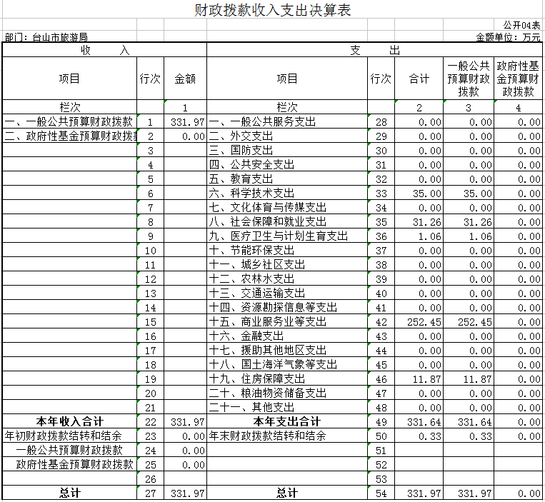 (二)2016年财政拨款支出331.64万元,结余转入事业基金0.33万元。