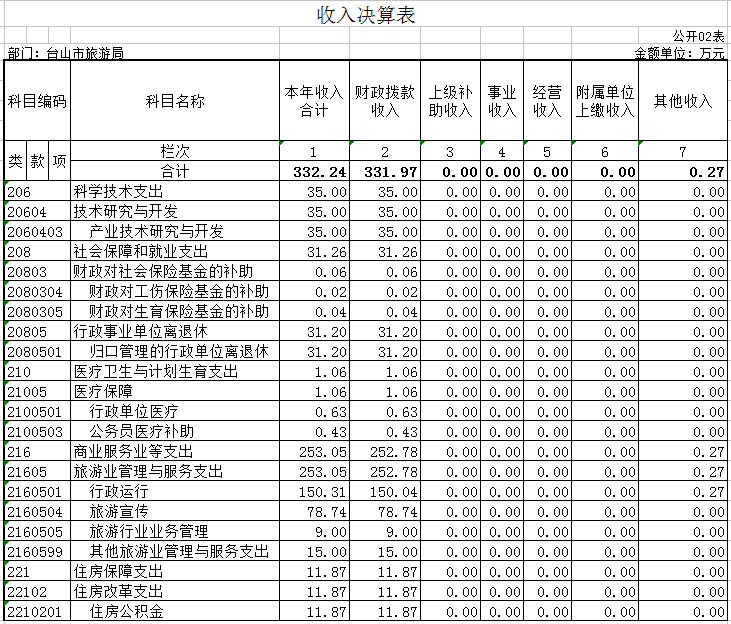 (二)2016年支出决算332.24万元,其中:财政拨款支出331.64万元,结余转入事业基金0.6万元。比2015年支出决算增加121.18万元,同比增长57.58%,主要原因:一是基本支出增加,本年度人员支出标准提高,同比增加44.43万元;二是项目支出新增旅游服务业发展“十三五”规划编制经费9万元,旅游扶贫资金50万元。