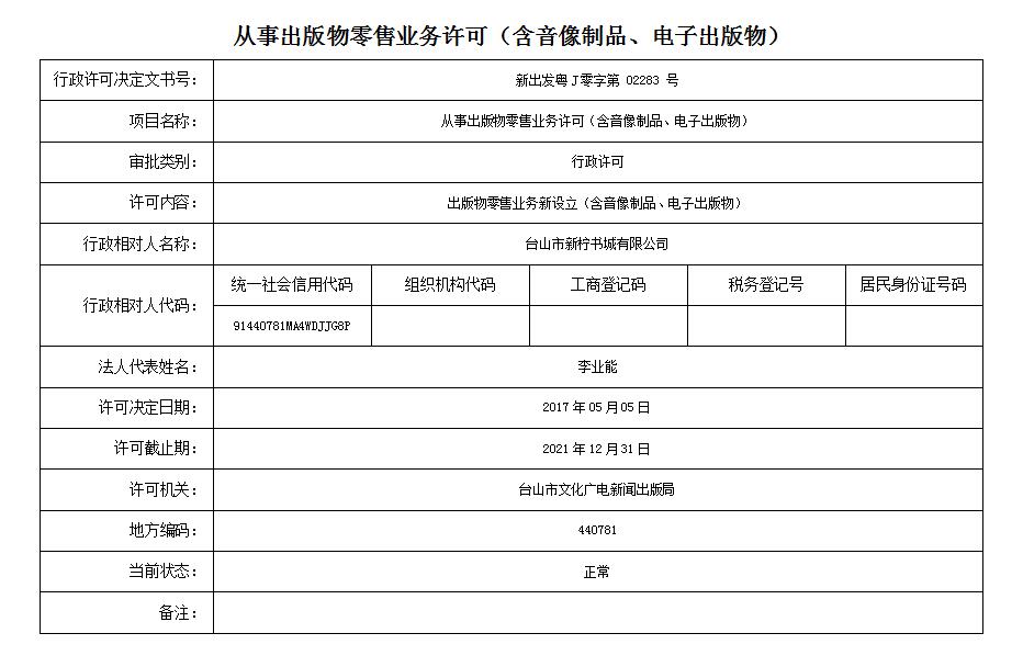 从事出版物零售业务许可(台山市新柠书城有限公司)