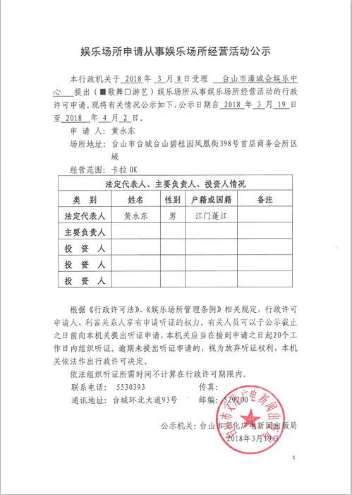 娱乐场所申请从事娱乐场所经营活动公示--濠城会娱乐中心