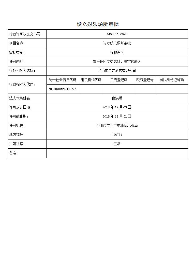 【行政许可】设立娱乐场所审批(金江酒店)