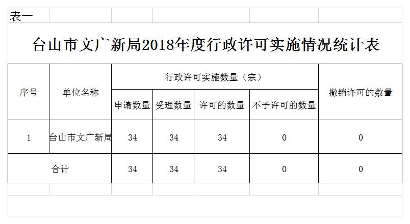 【行政许可】台山市文广新局2018年度行政许可实施情况统计表