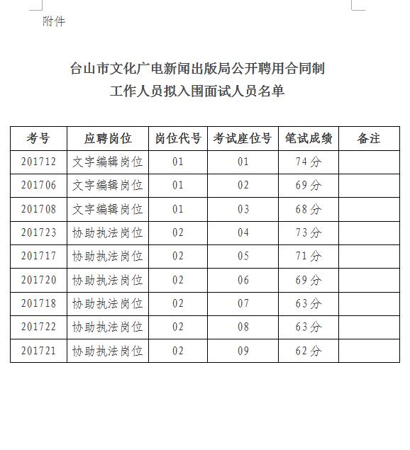附件:台山市文化广电新闻出版局公开聘用合同制工作 人员拟入围面试人员名单