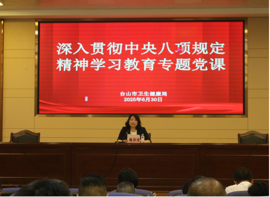 为深入学习领会习近平总书记关于加强党的作风建设的重要论述,推进深入贯彻中央八项规定精神学习教育走深走实。6月30日上午,市卫生健康局党组书记、局长魏清莲以《深入贯彻中央八项规定精神 永葆共产党人政治本色》为主题,为局机关全体党员、干部,各医疗卫生单位主要领导以及中层干部代表讲授学习教育专题党课,勉励大家锲而不舍落实中央八项规定精神,进一步传承弘扬党的红色基因,以优良作风凝心聚力、干事创业,推动我市卫生健康事业高质量发展。