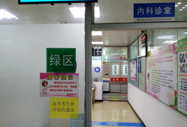 城区人民医院门急诊、发热诊室为保障考生考试期间就医需求,实行24小时接诊,对所有就诊的高考考生开辟了便捷、高效的医疗救护“绿色通道”,实行挂号、诊疗、检查、缴费等优先医疗服务。