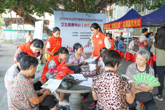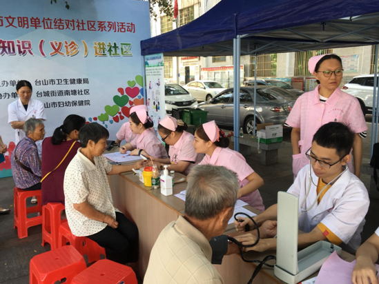为充分发挥文明单位的示范引领作用,全面提升精神文明建设质量和水平,有效促进党员“双报到、双服务”落地见效,扎实推进模范机关创建活动深入开展,10月21日上午,市卫生健康局联合市妇幼保健院、台城街道南塘社区组织党员干部在南塘社区开展以“卫生健康知识(义诊)进社区”为主题的2019年台山市文明单位结对社区系列活动暨党员“双报到、双服务”活动。
