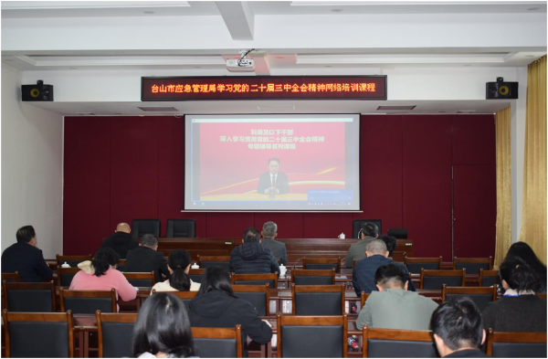 12月13日上午,台山市应急管理局党支部在六楼会议室召开党员大会,集中学习党的二十届三中全会精神、流动党员管理有关规定和《中华人民共和国保守国家秘密法》,机关在职党员干部、入党积极分子参加。