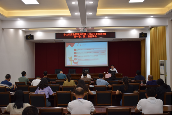 为认真贯彻落实习近平新时代中国特色社会主义思想,学深悟透《习近平著作选读》第一卷、第二卷,深化落实省委“1310”具体部署,以新安全格局保障台山新发展格局,8月15日,市应急管理局邀请市委宣讲团成员在局6楼会议室开展学习贯彻《习近平著作选读》第一卷、第二卷宣讲会。市应急管理局全体机关党员干部职工共计30余人参加此次宣讲会。