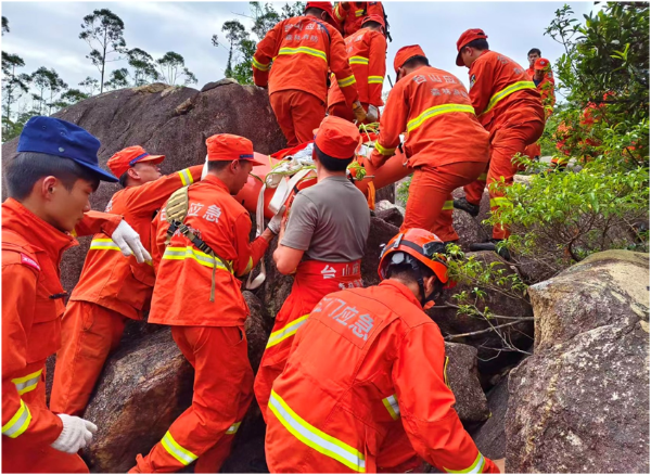 为掌握伤者情况,科学制定救援方案,救援队伍分批次徒步3个多小时上山,都斛镇卫生院随同第一批救援队伍对伤者进行应急处置,后经市人民医院专家现场研判,符合转运条件,指挥部最终决定采取人力搬运下山的形式对受伤驴友开展救援。同时,利用无人机投送应急物资至事发地点,确保伤员和其他驴友生命安全。