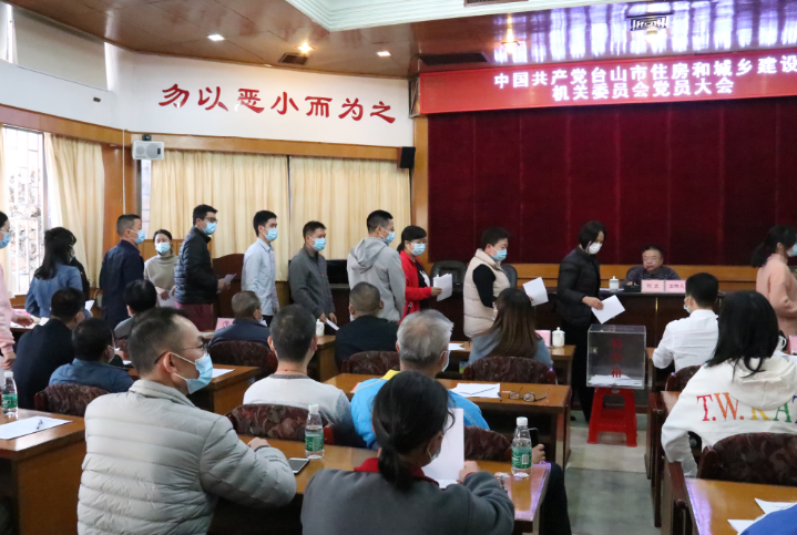 大会审议通过了《选举办法》,在总监票人和监票人的监督下,全体参会党员以无记名投票方式,差额选举产生了中共台山市住建局新一届机关委员会委员和机关纪律检查委员会委员。