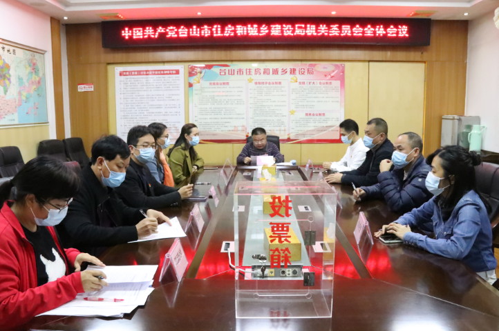 2021年1月5日下午,中国共产党台山市住房和城乡建设局机关委员会党员大会在市住建局308会议室召开,大会由市住建局党组书记、局长刘文主持,市直机关工委副书记盘爱红出席,市住建局全体党员参加。