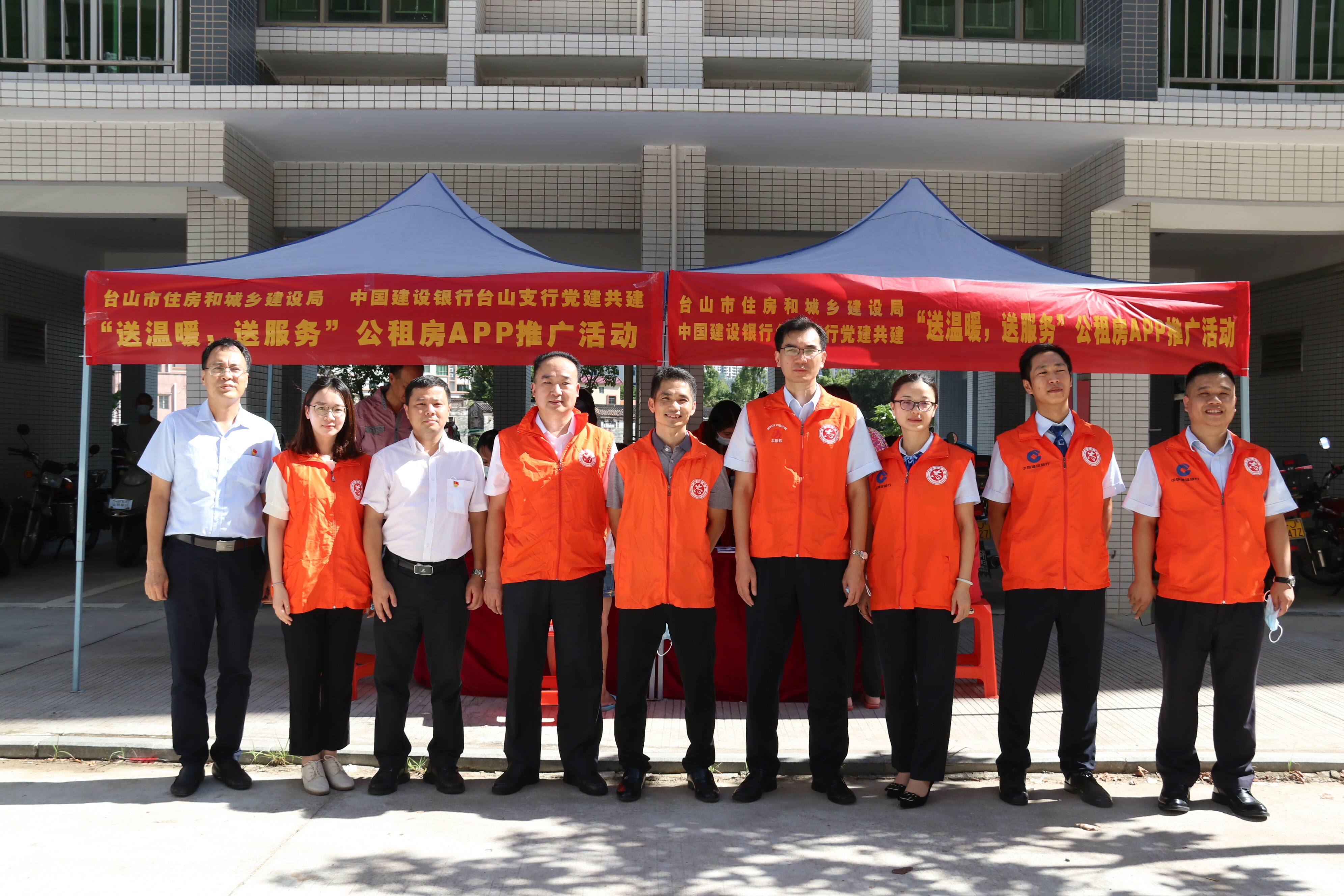 8月26日下午,为全面落实公租房APP推广应用工作,根据上级统一部署,台山市住建局联合建设银行台山支行开展党建共建活动。市住建局机关第四支部和建设银行台山支行第四支部的党员同志一起到缠溪公租房小区宣传推广使用公租房APP,市住建局余富前副局长、建设银行台山支行党委伍宗辉专职副书记、萧国海副行长到现场参加推广活动。