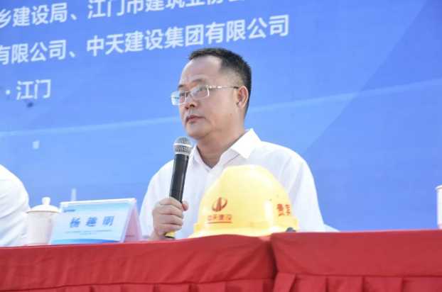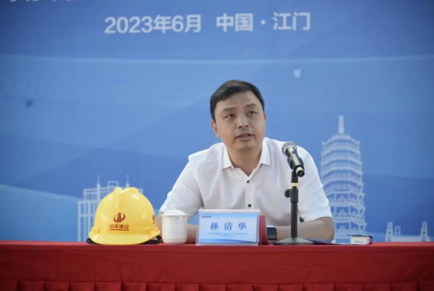 台山市政府党组成员、四级调研员杨趣明为本次活动做开场致辞。中天建设集团有限公司总裁闫新宇围绕安全生产管理,分享了企业在党建引领、安全标准化管理、施工全过程数字化管理、标准建造、绿色建造方面的经验。