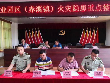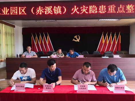 最后,由戴志滔镇长与我镇赤溪派出所、田头派出所、城镇建设管理与环保局、田头村委会、铜鼓村委会、赤溪居委会等单位为代表,签订《赤溪镇火灾隐患重点地区整治工作目标管理责任书》。