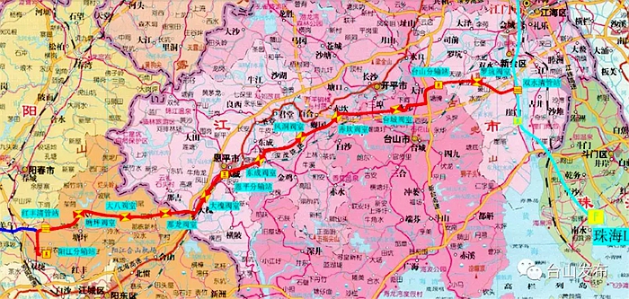 粤西天然气主干管网阳江——江门干线项目,全长170.3公里,管径813毫米,设计压力9.2兆帕,设计输量为26.85亿立方米/年;项目总投资为30多亿元。管道选址整体由西向东铺设,线路起于阳江市江城区,途经阳东、恩平、开平、台山、新会,终点位于新会双水镇,共设置5座站场、9座阀室。其中,台山线路东连新会,西接开平,长约32.2公里,在台山与新会交界处设台山分输站1个,在台城设阀室1座。