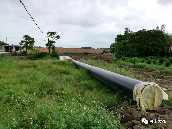 目前,该项目正在全面铺开。在中开高速公路项目的工地旁边,可以看到沿线整齐摆放着大量黑色的管道,这些黑色管道是粤西天然气主干管网阳江——江门干线项目的管道。为节省用地,项目规划部分线路与中开高速重叠,其中台山段大部分都沿着中开高速公路旁边建设。