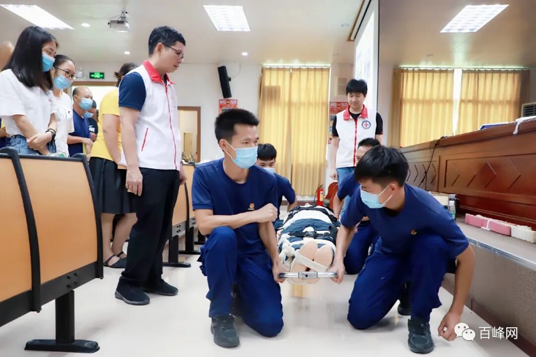 培训中,市红十字会的授课老师为参训人员详细讲解了现场急救救护知识、常见急症及意外伤害(气道异物梗阻、中暑、火灾、触电、溺水等)的现场处理、灾害现场逃生避险等知识,并讲授了现场心肺复苏术理论课程。现场,授课老师用人体仿真模型进行心肺复苏术示范演示,教大家如何请周边人帮忙报警拨打120电话、如何呼叫昏迷患者,监看心跳脉搏、如何打开患者口腔气道,清理口腔杂物及在患者心脏上方进行按压的规范手势、力度等知识。