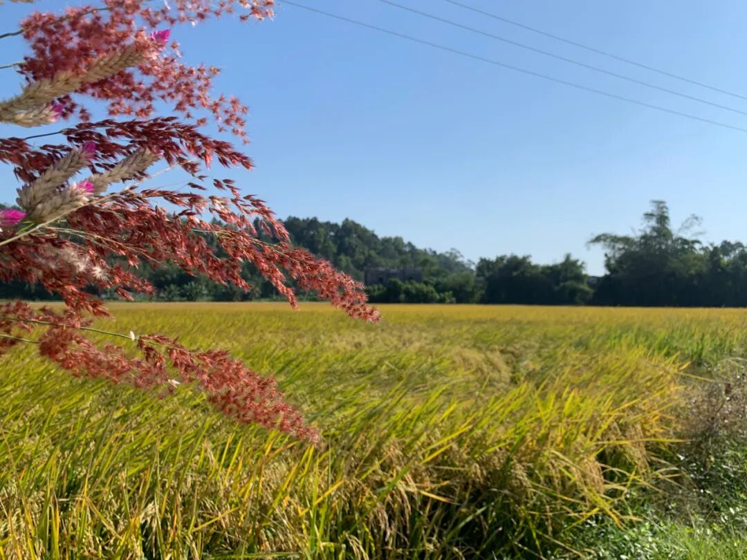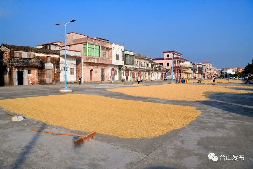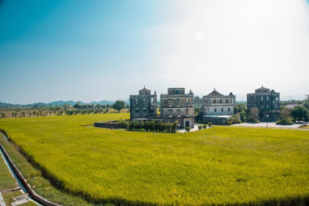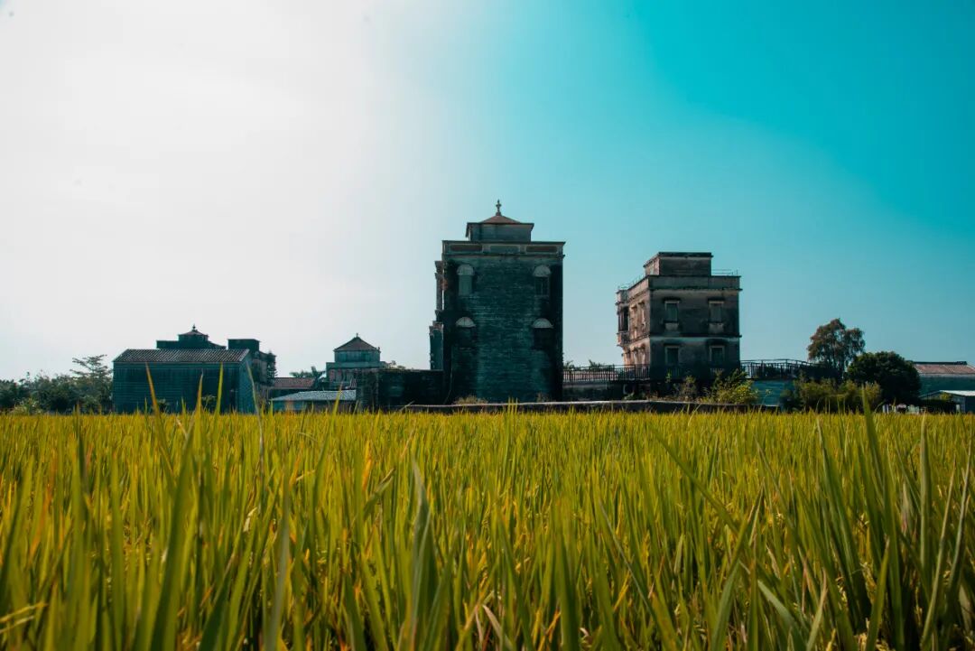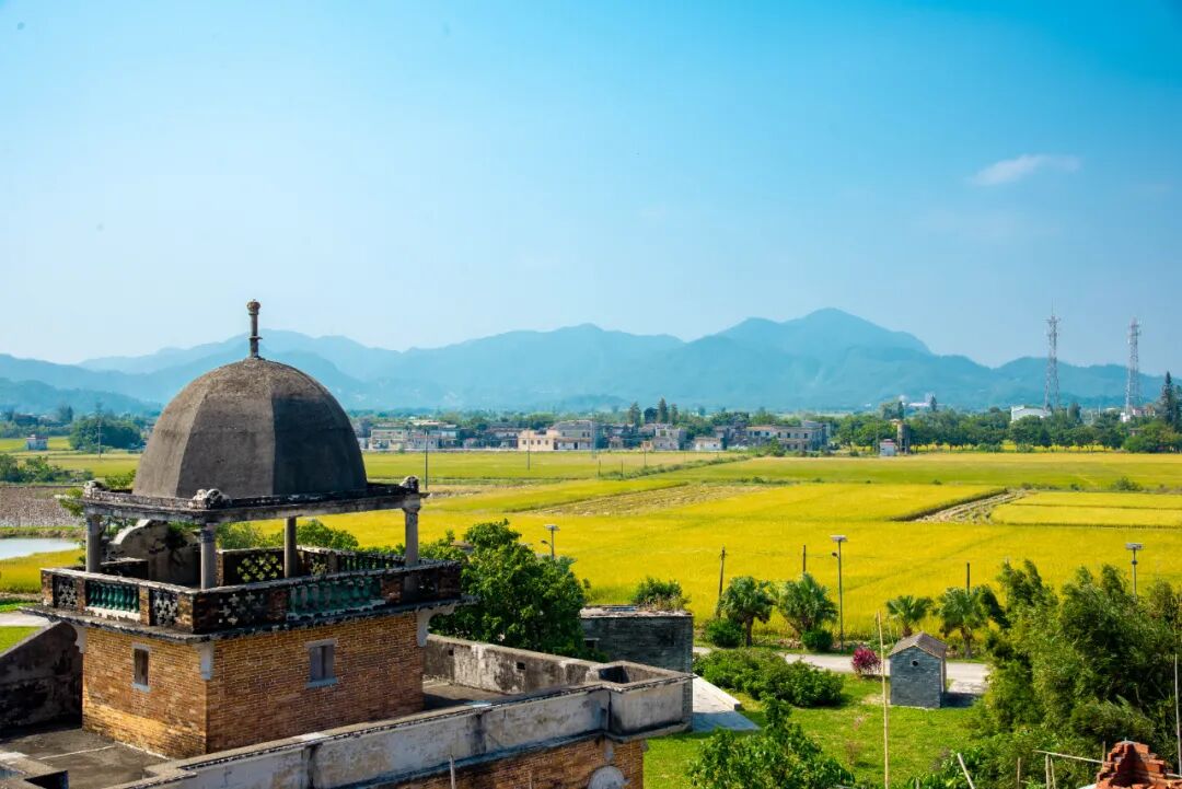 暖阳沐浴、稻田金黄,配上台山专属的蓝天白云、碉楼村居,目光所及之处,每一方每一寸都是美好的所在。
