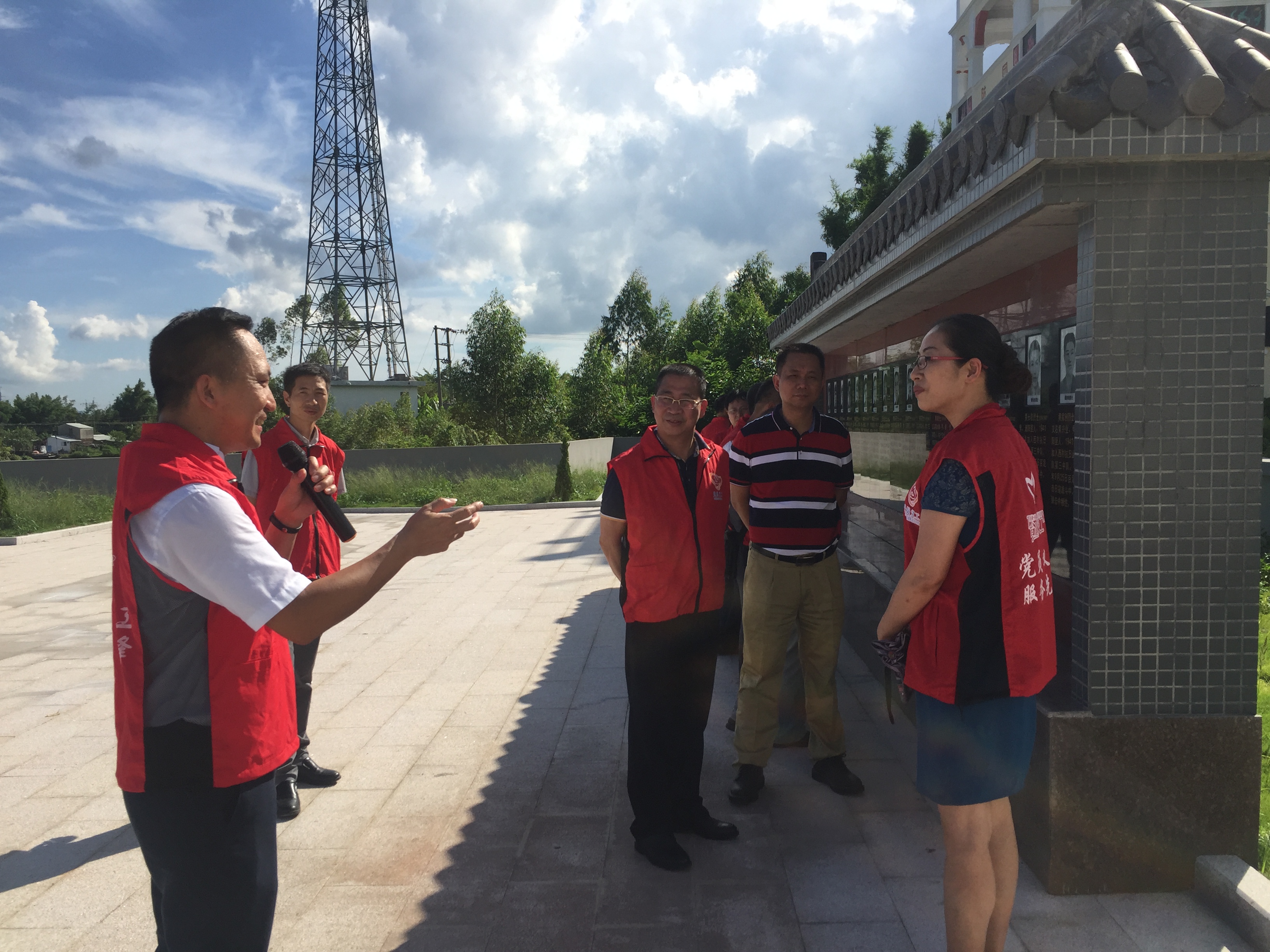 西村村委会位于白沙镇西北部、百足山下,是闻名的“革命根据地”。1939年6月,中共西村党支部在抗日烽火中诞生,称“西村第四中队”,有黄美英、黄伯衡等17位同志在战争中英勇牺牲。在西村烈士纪念碑前,党支部书记黄健明带领全体党员重温入党誓词,进一步提升了思想境界,坚定了理想信仰,激励大家继续以锐意进取的担当精神和脚踏实地的奋斗姿态,投入到改革发展的生动实践中去。