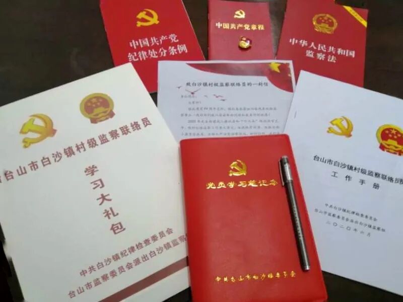 为帮助村级监察联络员开展学习,提高他们的能力素质,白沙镇纪委精心准备了这份“学习大礼包”,里面包含《中国共产党章程》《中国共产党纪律处分条例》《中华人民共和国监察法》以及《致白沙镇村级监察联络员的一封信》《白沙镇村级监察联络员工作手册》等学习资料,并配上党员徽章、学习笔记本和签字笔。