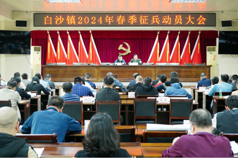 为扛牢党管武装政治责任,高质量完成征兵任务,近日,白沙镇召开2024年春季征兵动员大会。镇领导班子成员、各办(所、中心)负责人、村(社区)党组织书记、民兵连长及有关单位负责人参加会议。