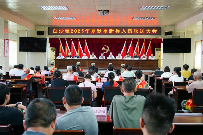 9月12日上午,白沙镇举行2025年夏秋季新兵入伍欢送仪式,为5名即将入伍的新兵送行。镇领导班子成员、各办(所)负责人、征兵办全体人员、相关村(社区)负责同志以及新兵家属等共100多人参加欢送仪式。