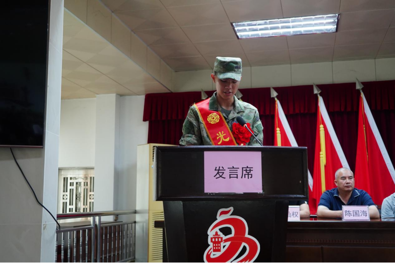“戎装在身,责任在肩,家国于心!军营即是熔炉,我们的责任便是保家卫国。”,新兵代表邝启峰表示,将牢记家乡嘱托,刻苦训练、磨砺意志,努力学习军事技能,严守纪律、服从指挥,争取早日成为一名优秀军人,为国防贡献力量,为家乡争光。新兵家属代表黄宗业表达了对孩子的支持与期望,希望他们安心服役,以实际行动报效国家。