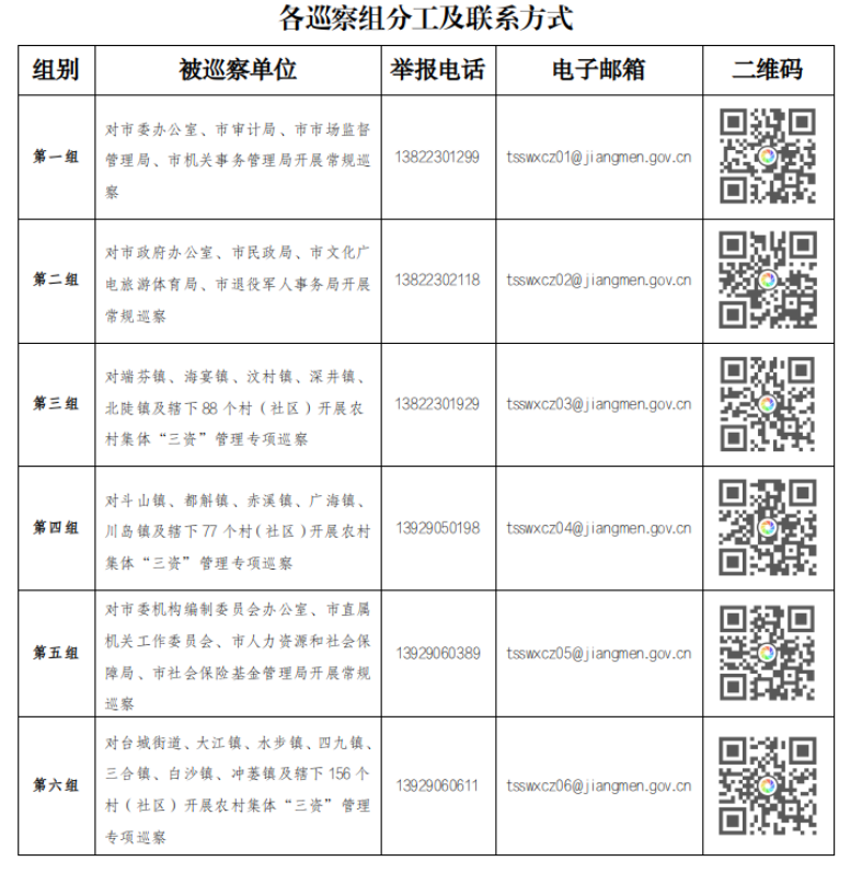 根据市委统一部署,市委巡察组于2025年3月下旬至7月下旬,对市委办公室、市政府办公室、市委机构编制委员会办公室、市直属机关工作委员会、市民政局、市人力资源和社会保障局、市文化广电旅游体育局、市退役军人事务局、市审计局、市市场监督管理局、市机关事务管理局、市社会保险基金管理局开展常规巡察;对台城街道、大江镇、水步镇、四九镇、三合镇、白沙镇、冲蒌镇、斗山镇、都斛镇、赤溪镇、端芬镇、广海镇、海宴镇、汶村镇、深井镇、北陡镇、川岛镇及辖下村(社区)开展农村集体“三资”管理专项巡察。