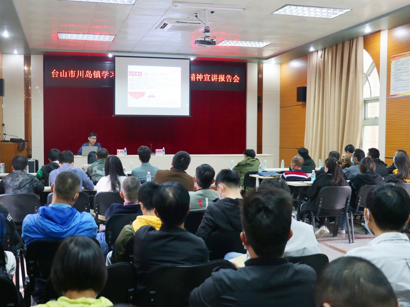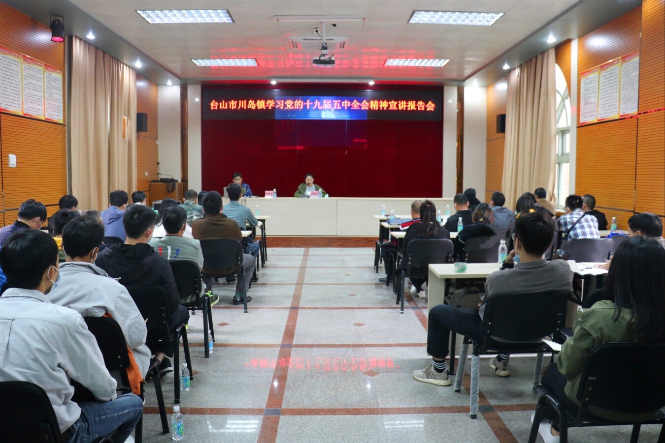 12月10日下午,川岛镇举办学习党的十九届五中全会精神宣讲报告会。市委宣讲团成员、市委宣传部理论文化股股长罗棠波作贯彻落实党的十九届五中全会精神专题辅导报告,镇机关、村(社区)干部等共90余人参加报告会。