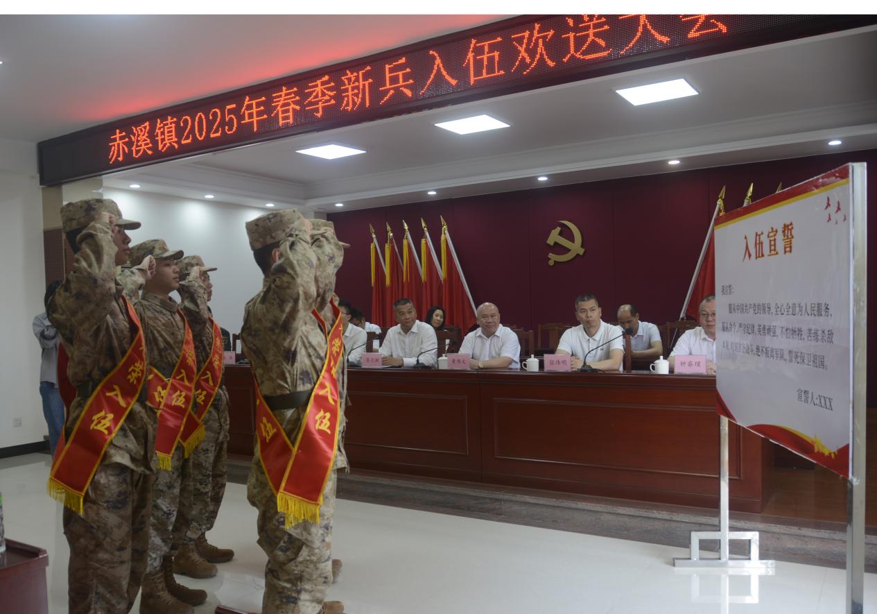 阳春三月送新兵,一身戎装启新程。3月13日上午,赤溪镇举行2025年春季新兵入伍欢送大会,热烈欢送即将开启军旅生涯、踏上保家卫国征途的6名新兵。镇全体领导班子成员、入伍青年及其家属、各村(社区)党组织书记参加欢送会。欢送大会在庄严的中华人民共和国国歌声中拉开序幕。