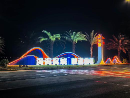 赤溪镇充分挖掘自身独特的客家文化底蕴,同时结合绿色低碳特色镇建设目标,在冲金路口设置了“滨海客城”“能源重镇”的主题入口标志。这一标志不仅是展现圩镇形象的新地标,更将赤溪依托山海资源、融合客家风情,深耕绿色发展的规划与愿景展露无遗。同时,赤溪镇着力提升周边绿化品质,全力打造沿线风貌,一路延伸绿意葱茏、独具韵味的靓丽风光。