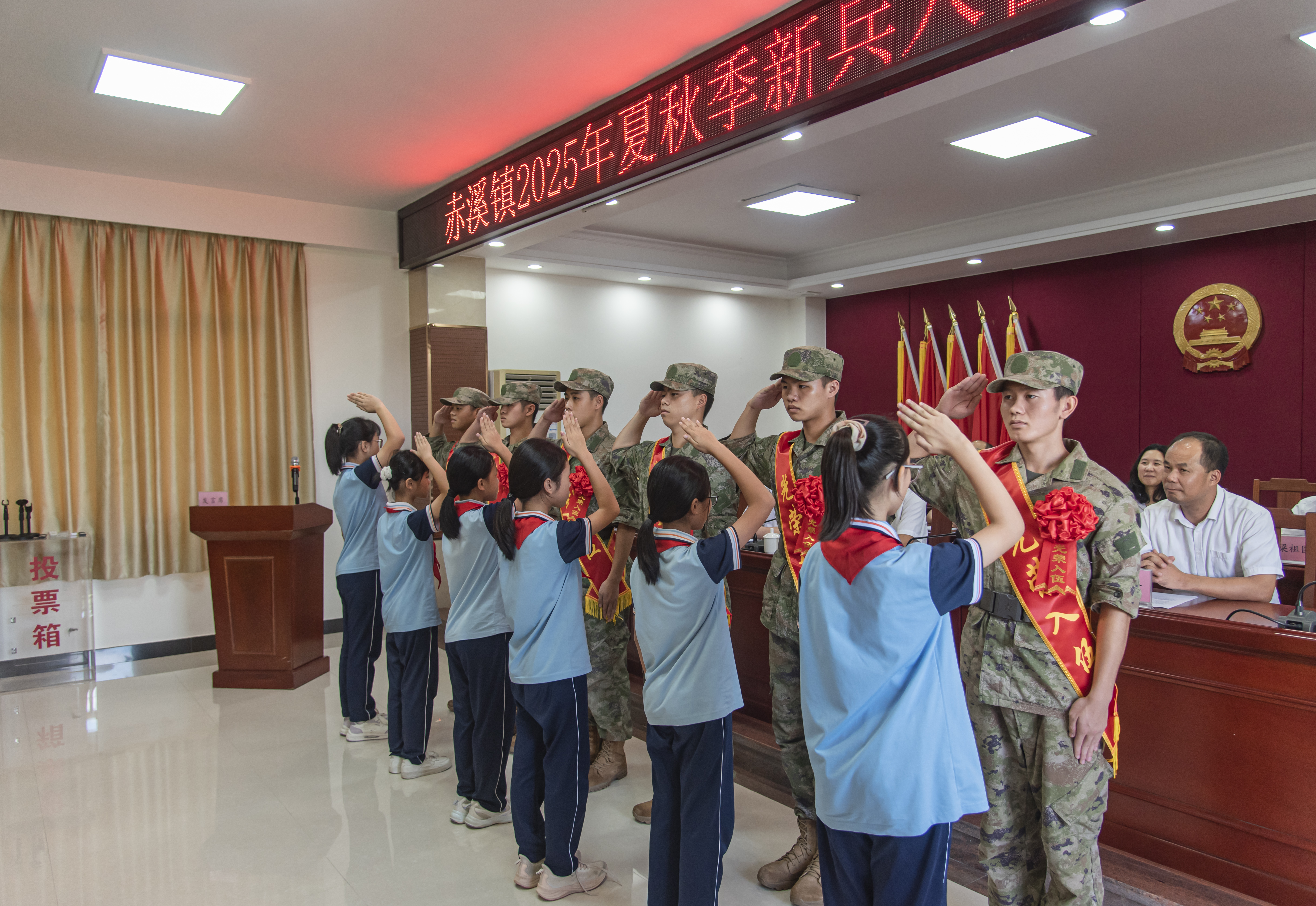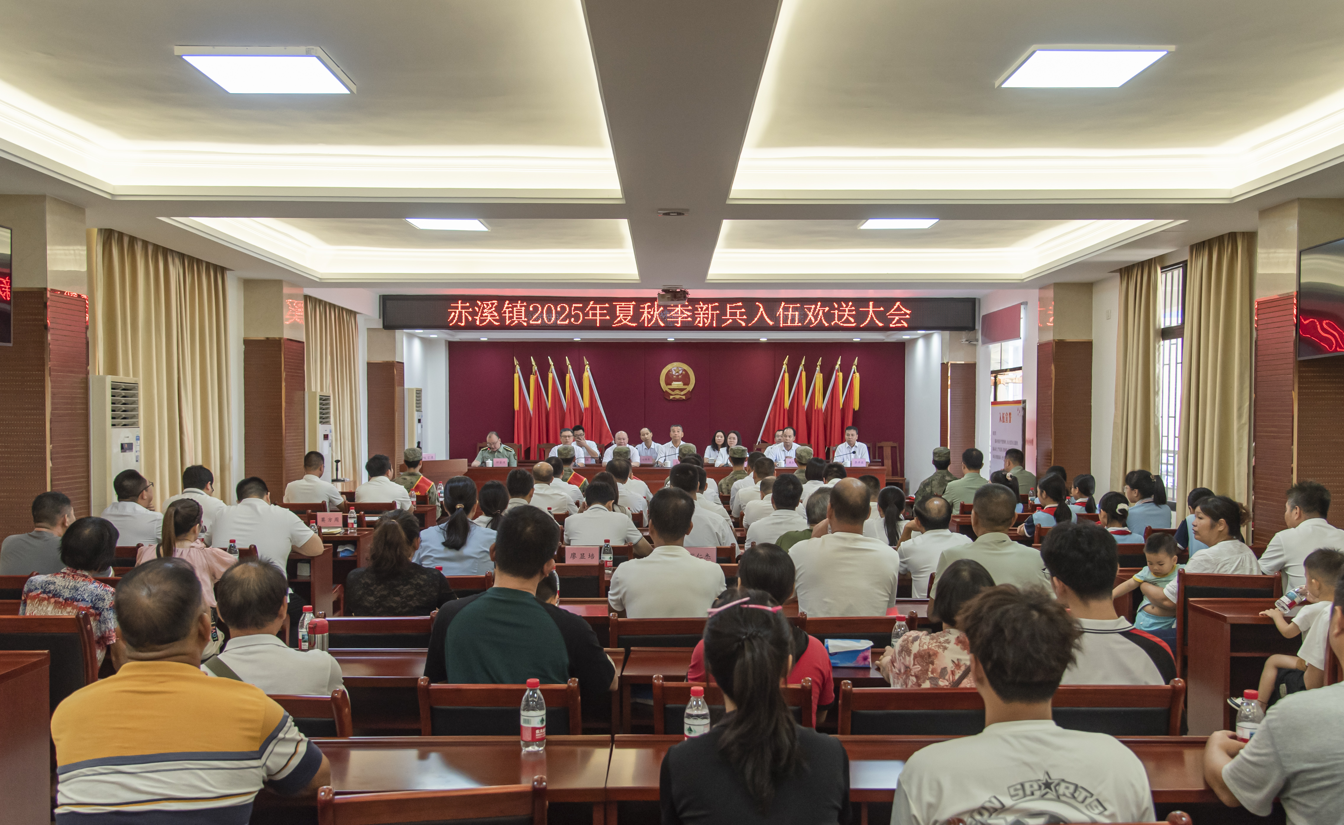 9月12日上午,赤溪镇隆重举行2025年夏秋季新兵入伍欢送大会,热烈欢送6名优秀青年新兵光荣入伍。赤溪镇领导班子、入伍青年及其家属、各村(社区)党组织书记参加欢送会。